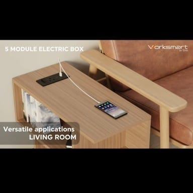 Compact 5-module switch panel, built with safe plastic, is perfect for offices, conference rooms, and home use. It features easy installation and an LED on-off indicator for added convenience.