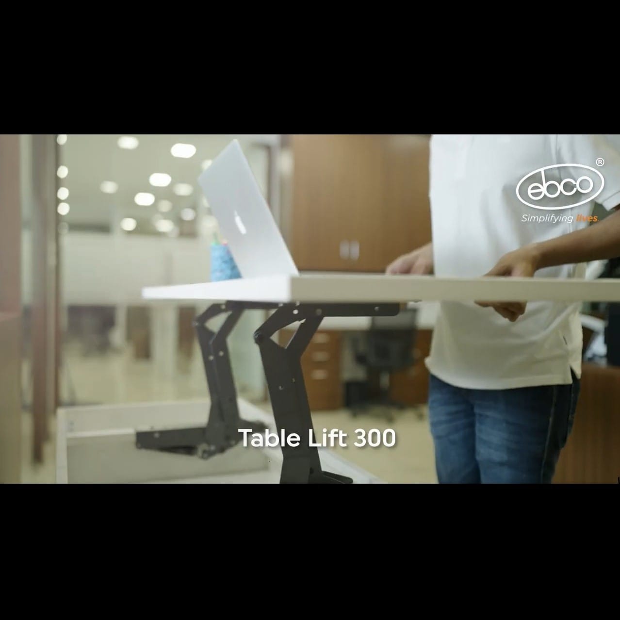 With our Table Lift 300, work in a standing or sitting position.