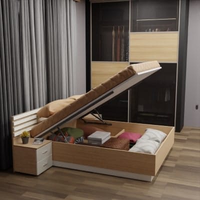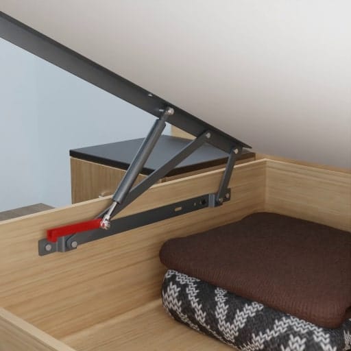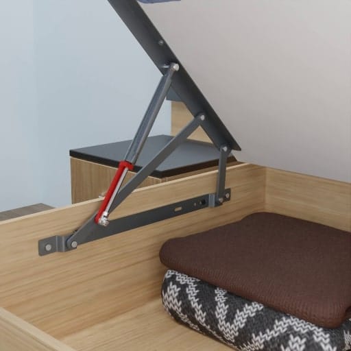 Ideal for storage under bed. Special gas spring available in four loads. 30° opening angle allows easy access. Easy to lift (with the weight of top board) with minimum force. Easy access as the gas lift keeps the bed top stay. Easy to Fit.