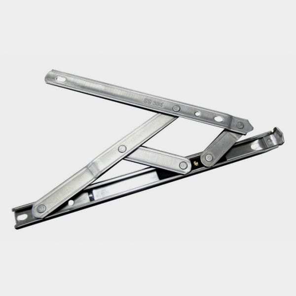 Made of AISI SS304 stainless steel Can be used in wood, aluminium or PVC windows Can be used for side hung horizontal axis opening ventilators, as well as top hung vertical axis opening windows Pressure adjustable brake for stopping. Self-cleaning design Finish: Raw Stainless Steel
