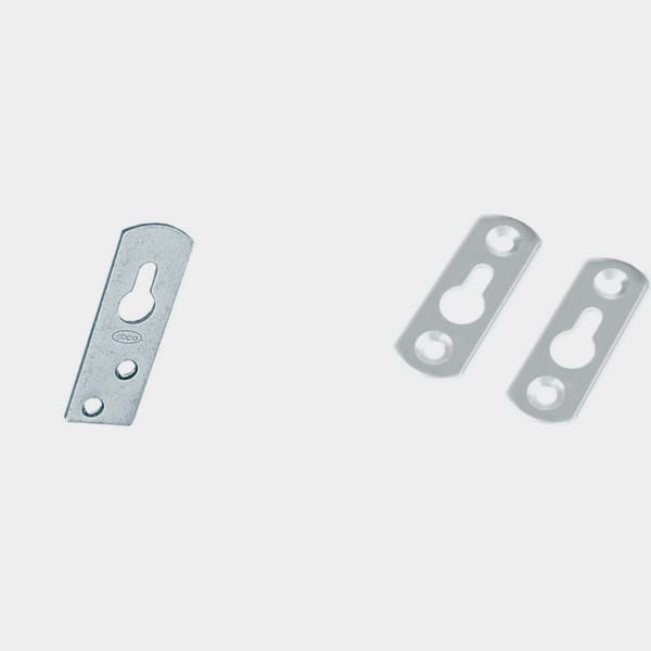 Hanger Steel and Zinc plated, for hanging wall mounted cabinets. Hanger Plate Ideal for hanging small cabinets, frames, etc. on the wall. System-32 compatible