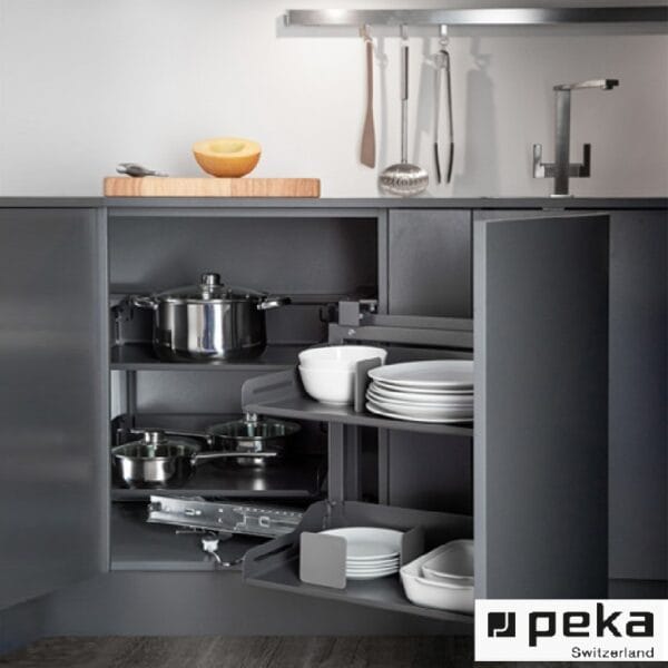 This corner mechanism makes best use of available space. Has excellent sliding properties and features the SoftStopp Plus soft-closing system. Its clip-on front cuts assembly time in half. Tool free alignment of the shutter (3 dimension). The shelves can be positioned at any height, making for optimal distribution. Magnetic Dividers can be used to organize…