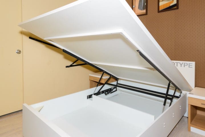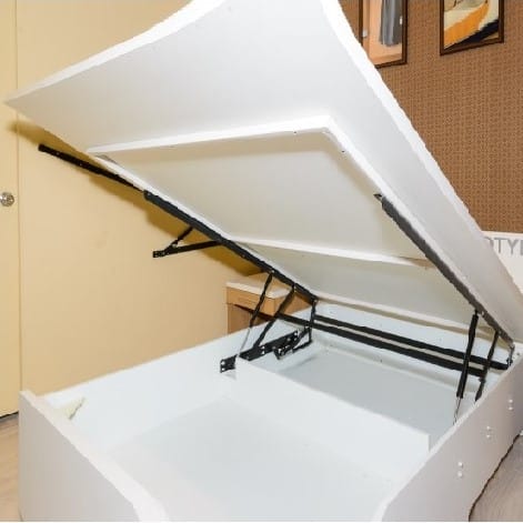 Ideal for storage under bed. Can be tilted as well as lifted & flattened (with the weight of top board) with minimum force. Dual gas springs provided for tilting as well as lifting & flattening. 30° opening angle allows easy access. Easy access as the gas lift keeps the bed top stay. Easy to fit.…