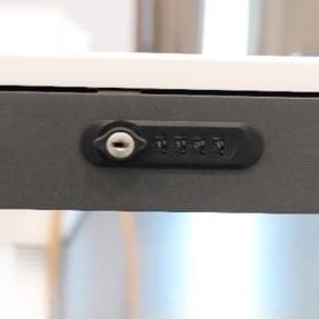 Conveniently designed for safe storage of important items. A useful product made specially for office Tables. Provided Four digit combination lock for keyless operation. Fitted on ball cage slides. Full extension of drawer 300mm. System 32 Compatible. Easy to fit and use. Weight capacity: 15Kgs.