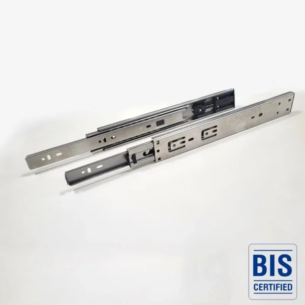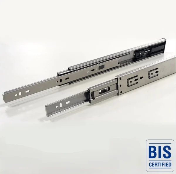 Manufactured out of stainless steel 304 grade. Built-in soft close mechanism. Precision ball bearings ensure smooth movement. Full extension of drawer. Easy for installation Load Capacity: 35 kgs. Direct fitting from front Removable drawer with latch System 32 installation 72 hrs. salt spray test passed BIS certified 50000 cycles tested