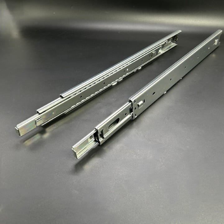 Precision ball bearing. Full Extension of Drawer. Direct fitting from front. Removable drawer with latch. Load capacity 35kg.