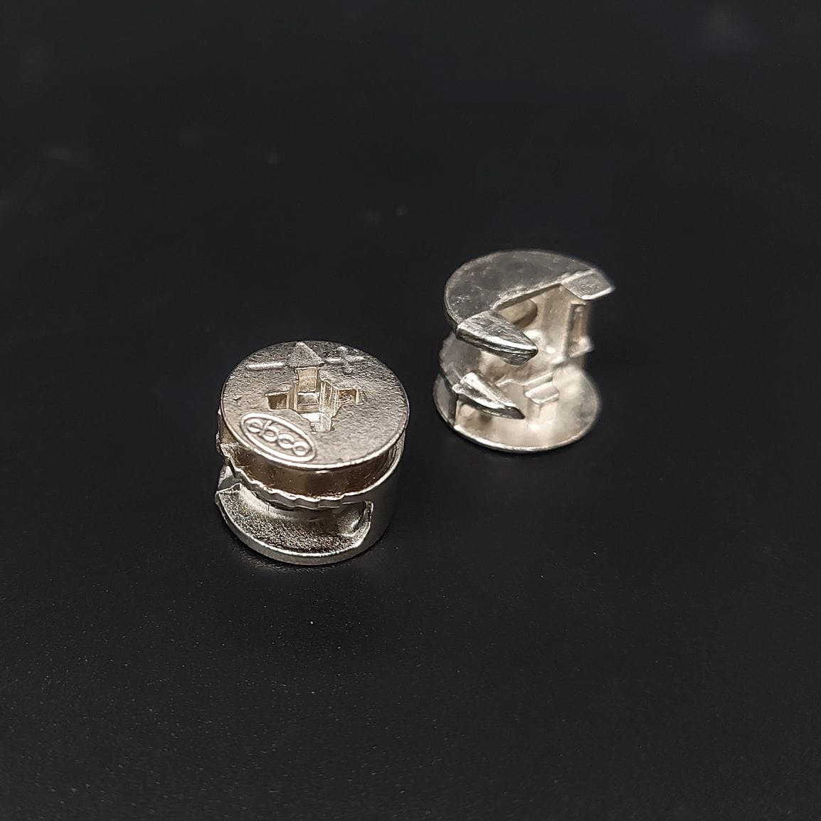 Easy and rapid installation. Half turn locking. Cutter size: Ø15mm. Flat pack C.K.D. fitting with pre-drilling. Housing available for 12, 16, 18 & 25 mm boards. Cap available for concealed fitting.