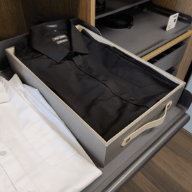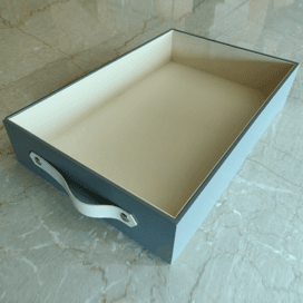 This new storage box size cabinet tray with handle is ideal for storing stacks of Shirts, T- Shirts, Trousers, Scarfs, Belts or more. Keeps your wardrobe properly organised Leather finish from inside gives aesthetic look and keep your accessories safe from scratches. Can be easily positioned anywhere in the wardrobe as per your convenience
