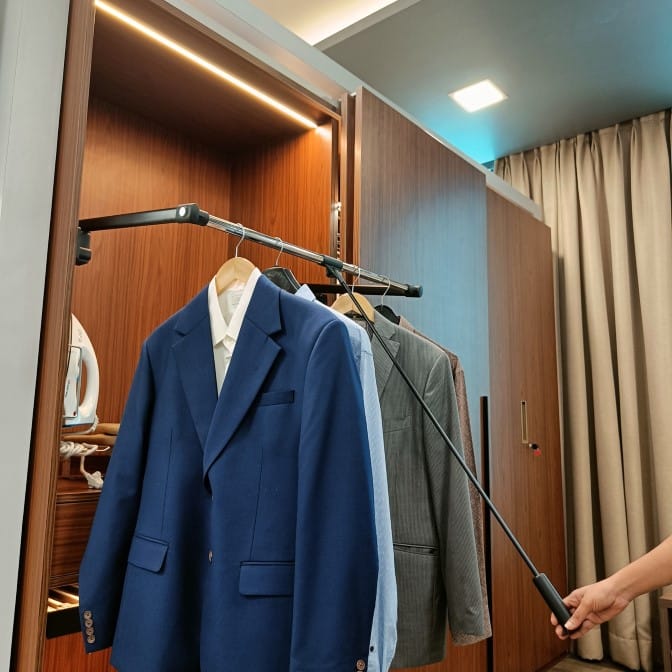 • Lift can be lowered and locked in position to keep or remove clothing.