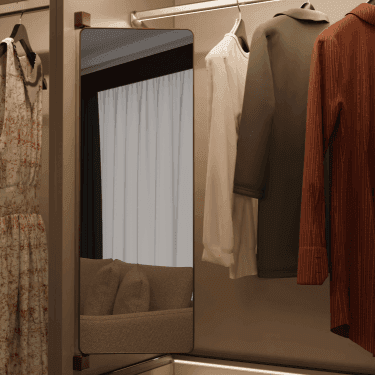 Low profile design that fits into wardrobe interiors (side mount) Saves space and maximizes wardrobe use Rotates 180° for easy viewing Minimum cabinet depth: 320mm Inner cabinet height: ≥940mm (WMP-9030), ≥640mm (WMP-6030) Finish: Brown