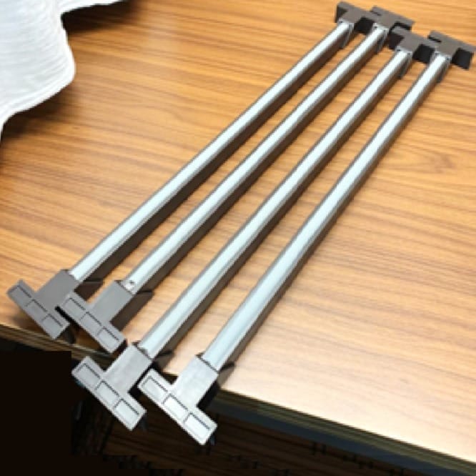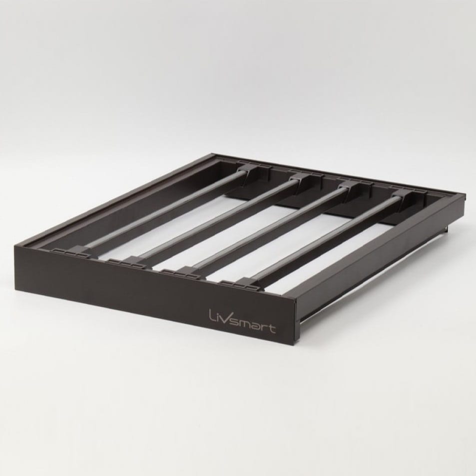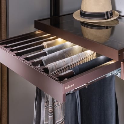Store trousers/ sarees without creasing them with this innovative pull-out wardrobe rack. Easy pullout providing clear access to your outfits. The nonslip PVC lining on removable hangers hold pants/ sarees fabric firmly. Design for 450, 600, 800 and 900mm wide cabinets, with soft close feature. Now available with Extra hangers set of 4